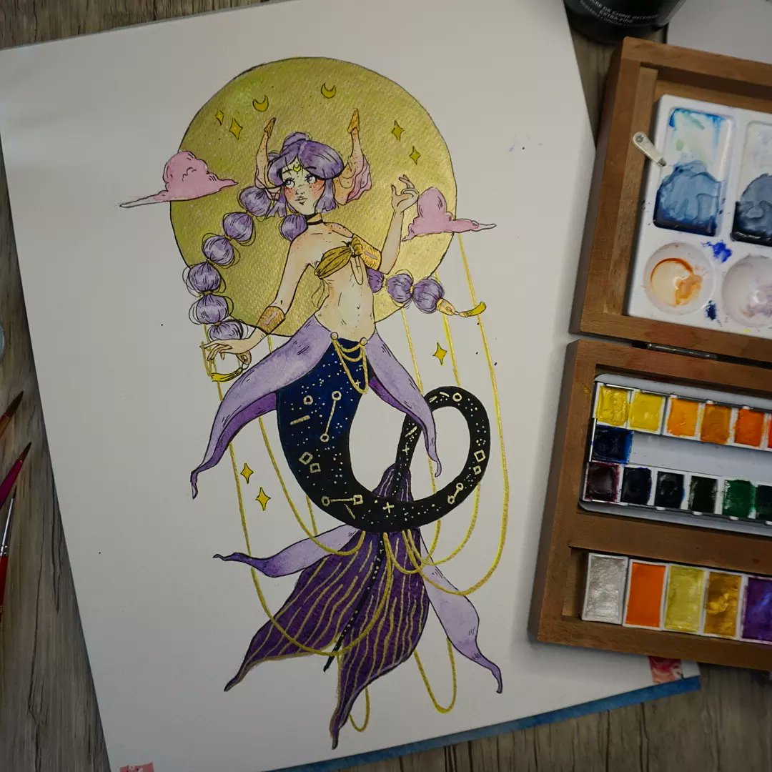 Is #mermay a thing in twitter?😆 I won't be making them everyday but here's one comin' in hot! #art #ArtistOnTwitter #ohuhuart #himigouache #traditionalart #mermay2021 #mermaid #moonwispart