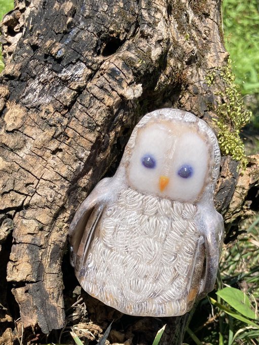 2 16 #初夏の創作クラスタフォロー祭り 🍀レジン液を使い、0からフリーハンドでフクロウ🦉を中心に制作しています🤗✨🍀 写真はエゾフクロウのふぅさん🦉💞 どうぞ宜しくお願い致します🥰 22/06/11 13:14