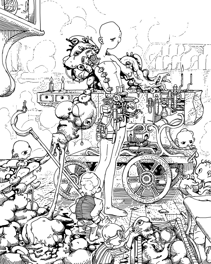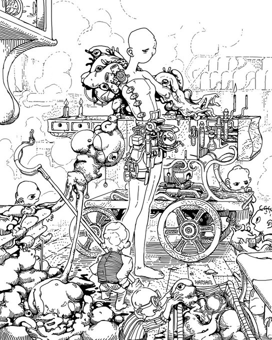 Heya, i like to draw with ink and vary a lot between fantasy, horror, cyberpunk and cute stuff. Occasionally i'm doing some music, 3D modelling or game development. #PortfolioDay 🤖 hapsam.com 👺 instagram.com/hapsam_art/ 👽 artstation.com/hapsam