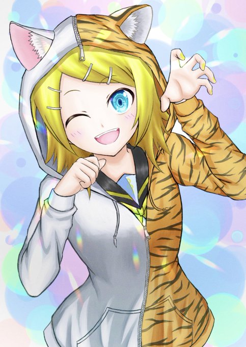 白猫&虎パーカー鏡音リンちゃん 無名の絵描きです よければ見てやってください #鏡音リン #絵描きさんと繋がりたい #絵柄が好みっていう人にフォローされたい