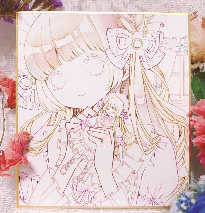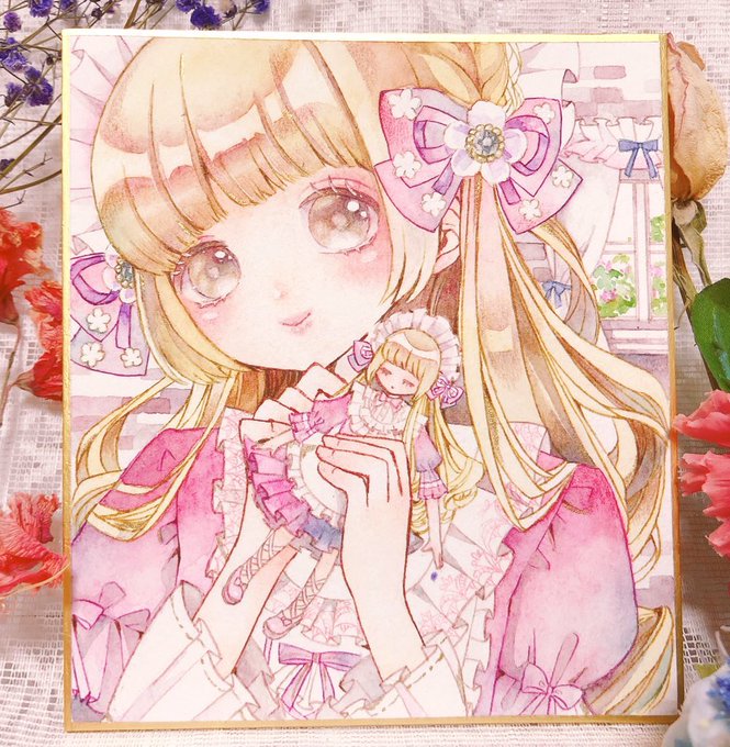 ビスクドールちゃん完成ꕤ*。゚ #イラスト #創作 #水彩 #アナログ