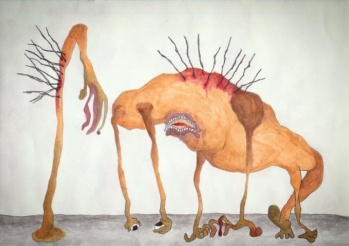 1 7 奪い合い、、、 #動物イラスト #動物アート #空想画 #抽象画 #アート #イラスト #絵本 #水彩 22/11/16 12:04