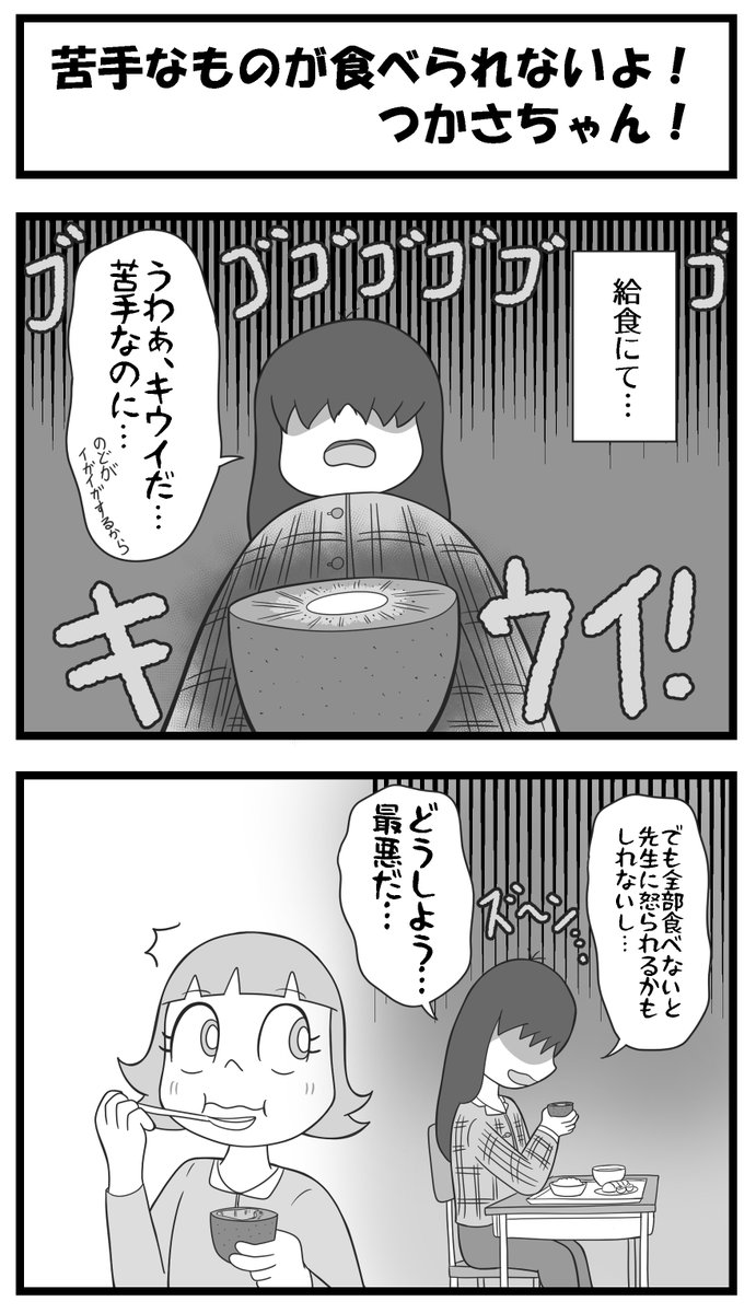 「苦手なものが食べられないよ!つかさちゃん!」 #プラス思考のつかさちゃん #漫画が読めるハッシュタグ #5コマ漫画 #ポジティブ漫画