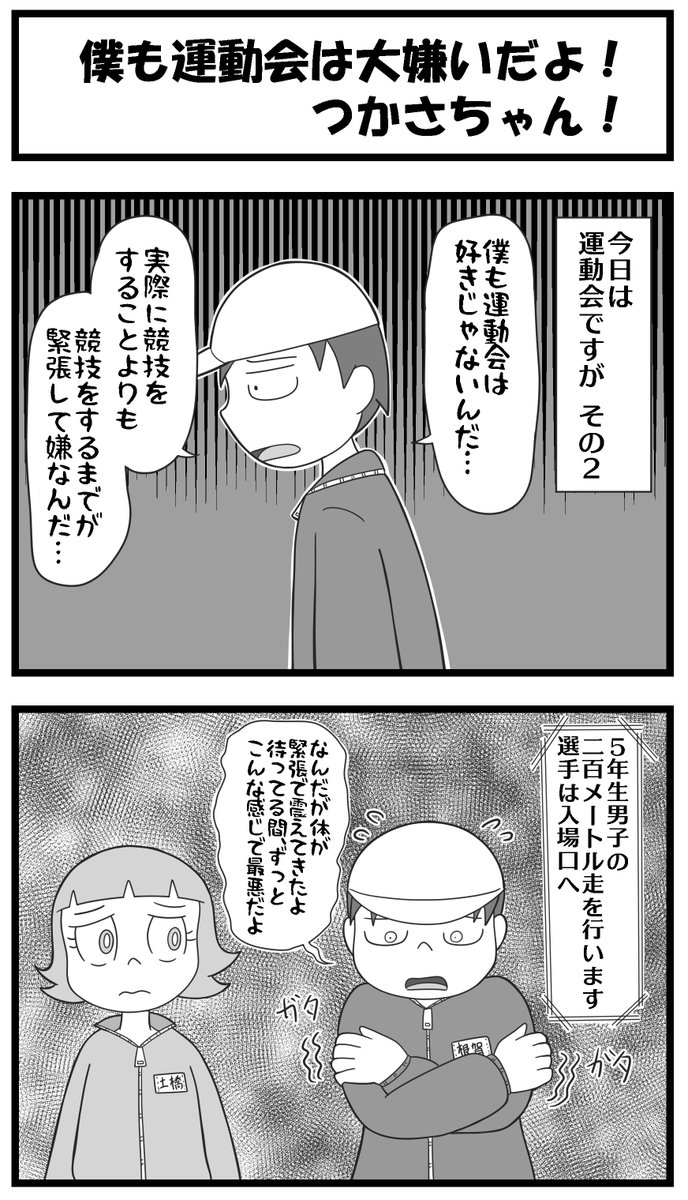0 2 「僕も運動会は大嫌いだよ!つかさちゃん!」 #プラス思考のつかさちゃん #漫画が読めるハッシュタグ #5コマ漫画 #ポジティブ漫画 #運動会 22/01/12 16:13