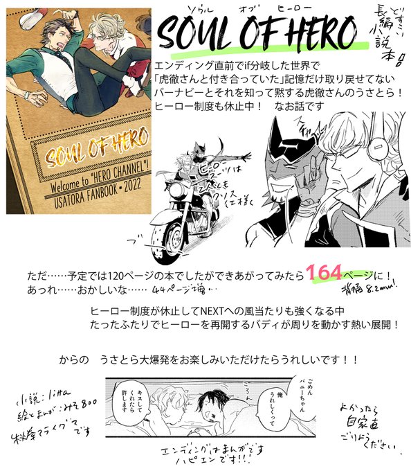 「SOUL of HERO」2022年12月4日に発行決定しました~~~! お待たせしました! お知らせ画像も作ったのでよかったらごらんください~~ 120ページのはずが160ページに大増量(やっちまった)、お値段そのまま、自家直で受け付けております jikachoku.com/?pid=167086685