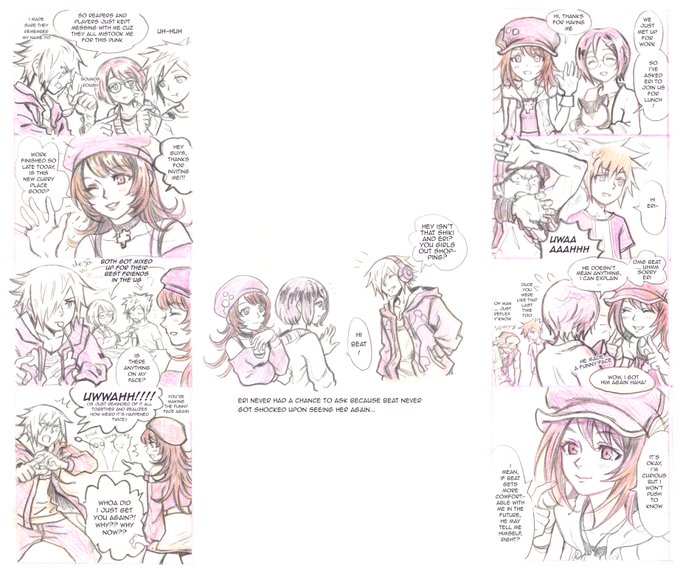 Just some personal musing on how Beat and Eri would meet 3 years ago and now :3 Neo Eri fan design by my friend @Areimlll #ntwewy #neotwewy #neotwewyspoilers