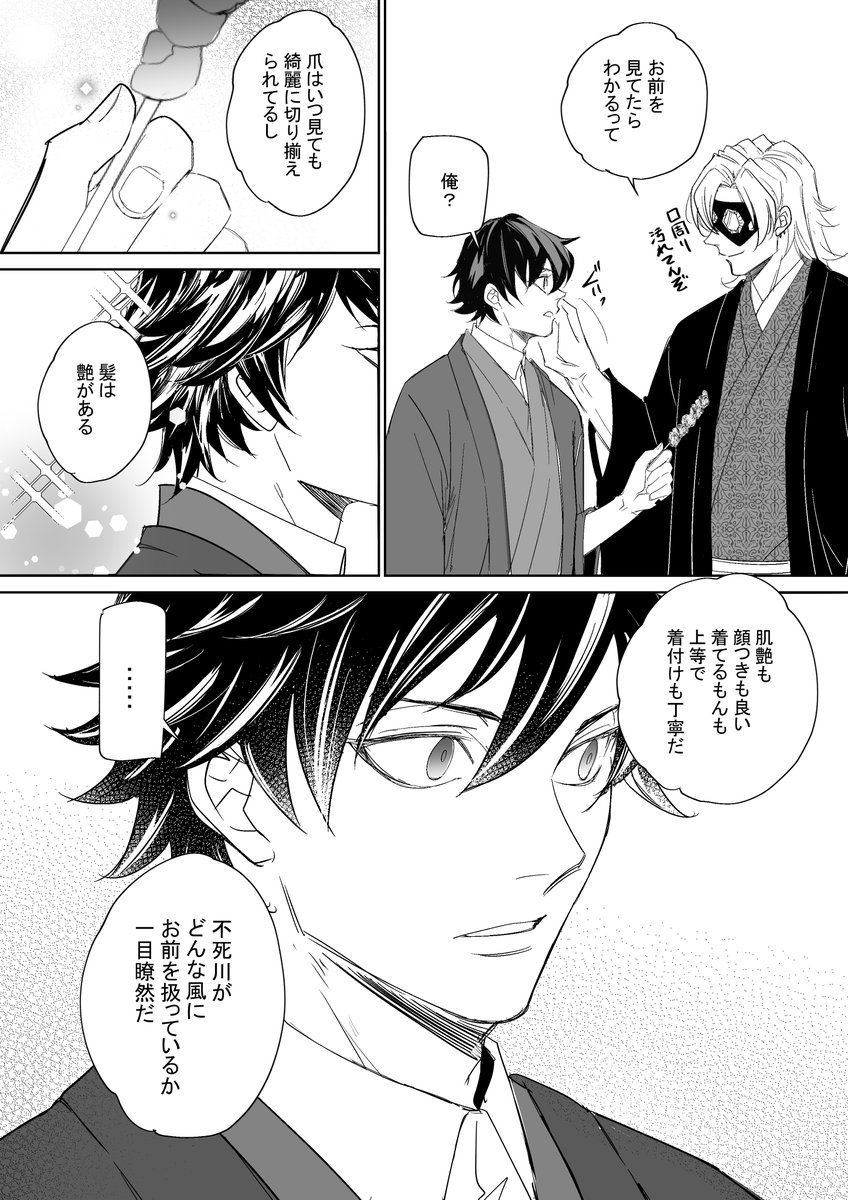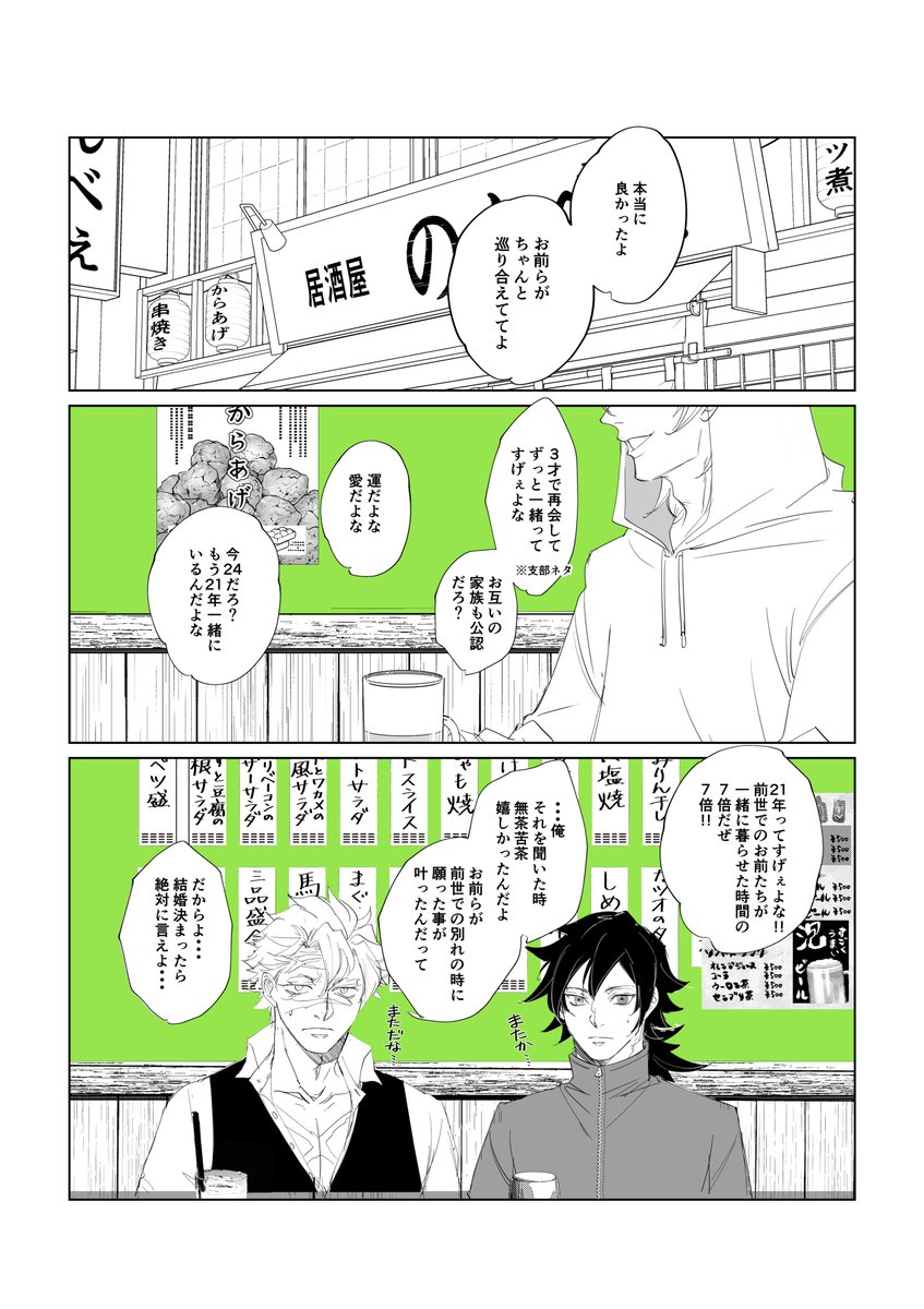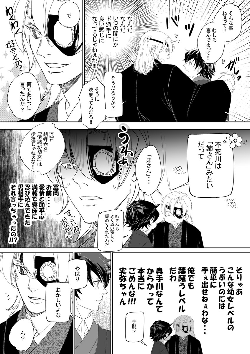 102 1266 KMT遊i郭i編八話妄想 💎→🍃バージョン② 前にアップした七話妄想の続き的な感じ 気持ちは、さねぎゆで描いてます 遊i郭i編、真面目に感想描きたいと思って それぞれの兄弟の立場的なモノや、時折現れる🔥さんの姿や声が色々胸に刺さって頭が纏まらない・・・ しかし💎さん、カッコいいわ #さねぎゆ 22/01/28 01:40