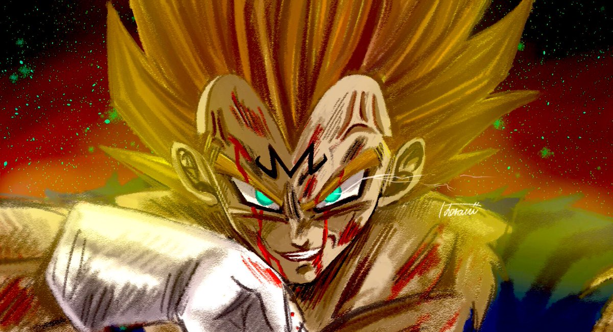 フォロワーさん400人突破ありがとうございます!!!! すごくすごく感謝!!!! テスト終わったらたくさん描いたり塗り絵したりするのでよかったら見守っててください〜🙏✨ だいぶ前のらくがきしかなかったのでまた魔人ベジータです😂