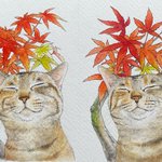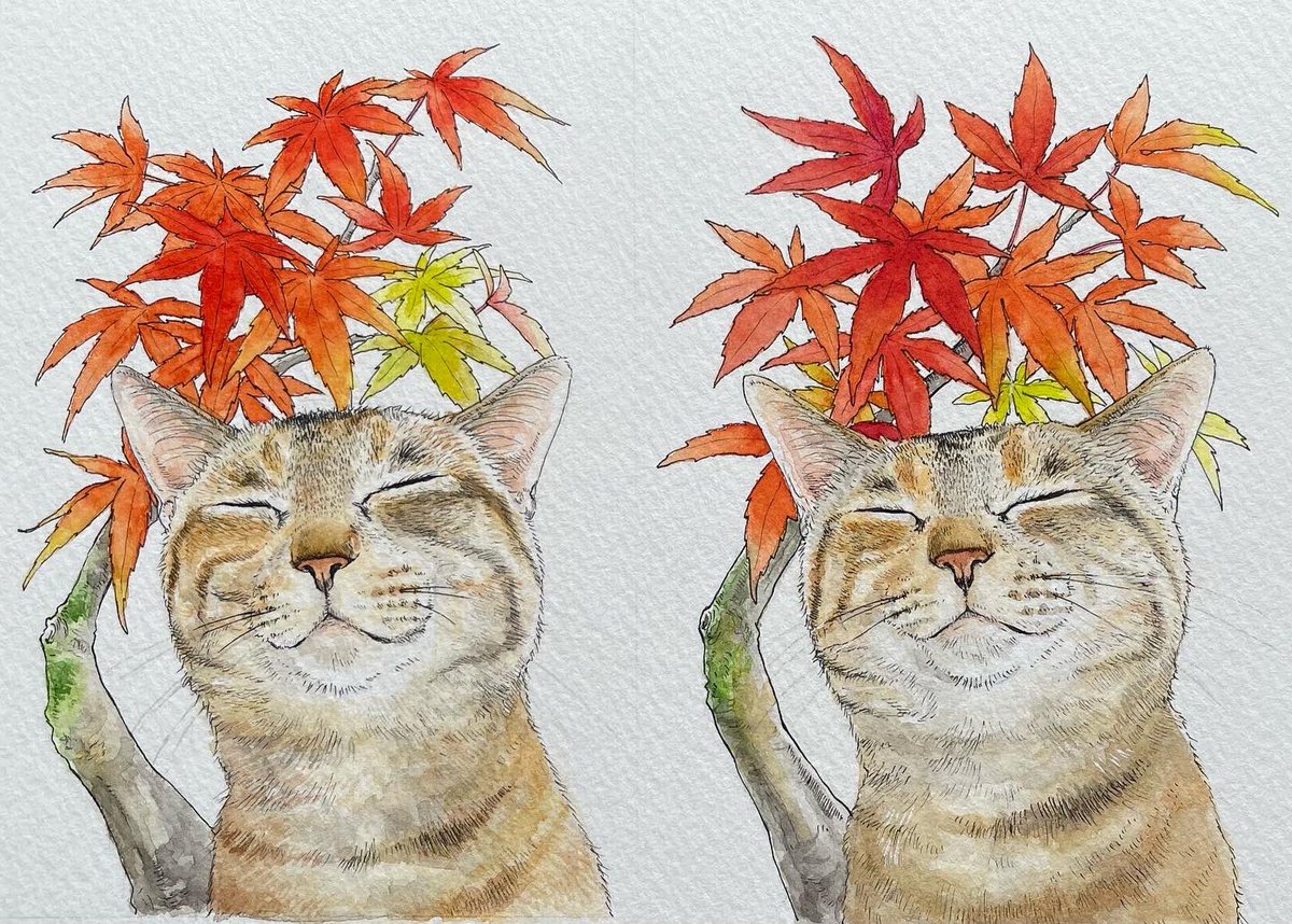 2 20 9月になっちゃったけど😂 8月に描いた絵たち〜。 紅葉の絵は、どちらを額装するかはもう決めました✨ #今月描いた絵を晒そう #水彩 #猫がいる幸せ 22/09/01 22:14
