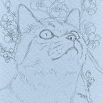 1 14 早速バラ🌹描いてる。 間に合うかなぁ…上のコスモスも塗って、ミニ原画展に出したいのだが…。 #wip #猫イラスト 22/10/09 00:21