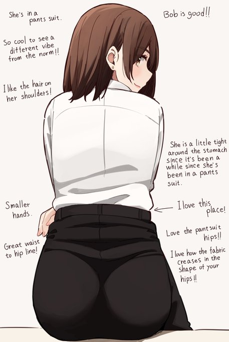 She's in a pants suit.