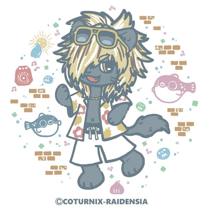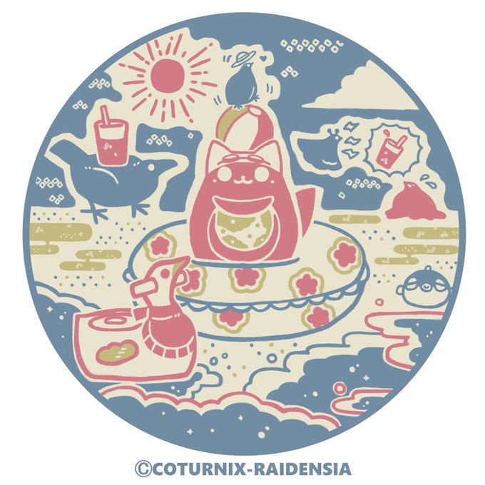 2 14 海で夏を楽しむトイレの神さま🐺たちを描いてみました🌻喉が乾いたらカラスちゃんやエイリアンウズラがドリンクを持ってきてくれます🥤 トイレの神さま🐺のオシャレポイントは水泳帽みたいです🤭🏖️ 23/08/20 08:04