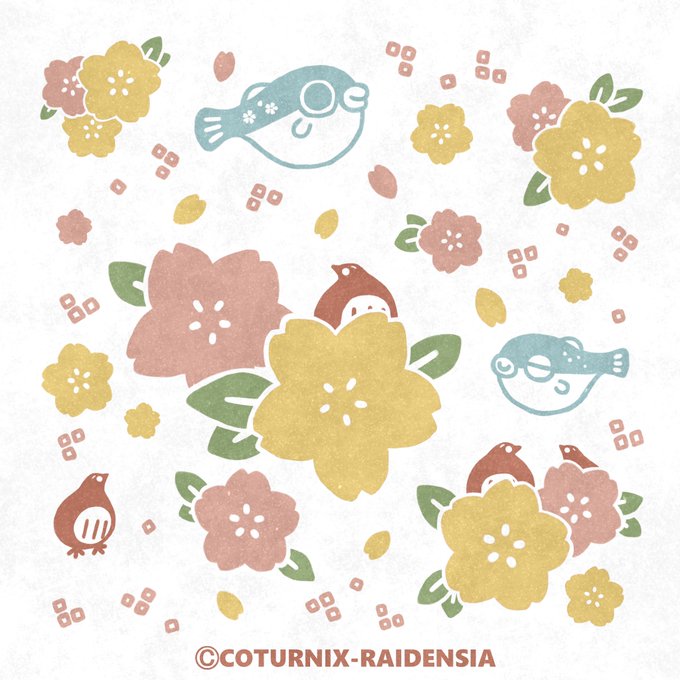 桜を見に来たウズラとフグちゃんたちを描いてみました🐥🐡🌸 春といえば桜🌸そして花粉ですね😂 最近花粉症がひどすぎて辛いです🐣😭