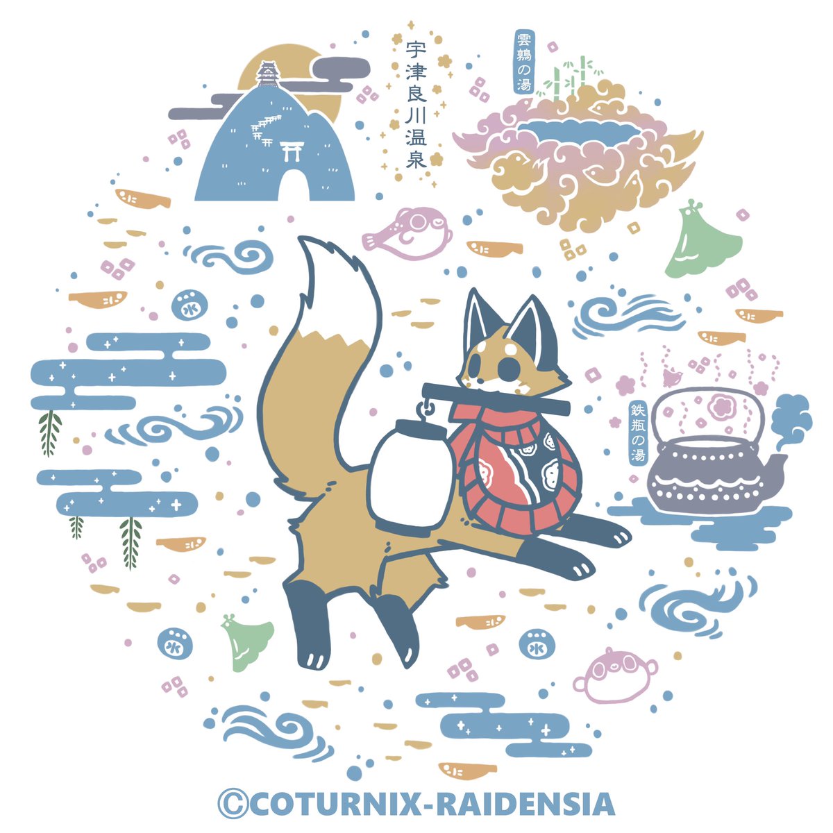 宇津良川(うづらがわ)をパトロールする稲荷狐ちゃんを描いてみました🦊🚨 宇津良川温泉には雲鶉が集まってできた空に浮かぶ不思議な温泉や保温効果抜群の鉄瓶の湯があります♨️ 稲荷狐ちゃんも夜勤明けに温泉でゆったりするみたいです🦊🐾