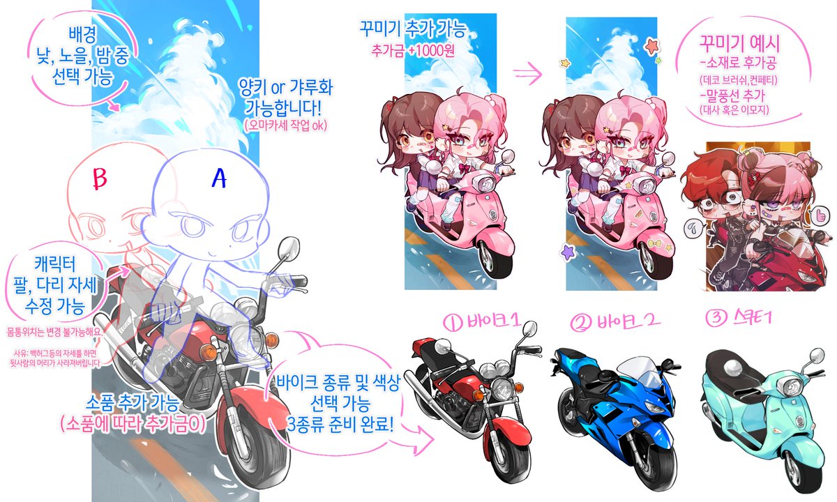 RT ❤️<빠라바라바라밤!> SD 바이크 고정틀 커미션을 열었습니다. 여유 될 때 알티 추첨으로 페어or 커플을 바이크에 태워드려요. 콜리- ccoli.co/@harappy0/4181 포스타입- posty.pe/p9hume 슬롯 제한 없이 받을 예정이나 신청이 몰리면 닫아둘 수 있습니다/ 감사합니다~!