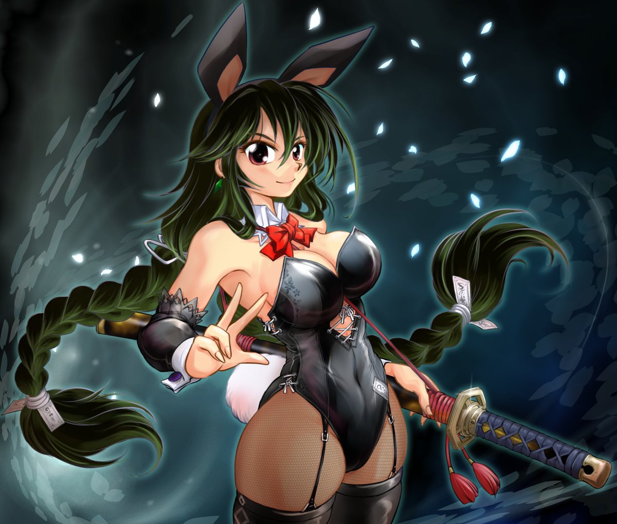 突然ですが8月21日はバニーの日だから脈絡もなくポン刀バニー描いてみたよ。今何時?8月21日84時。今年も間に合いました!去年は212時頃だったので大幅な進歩じゃね?ね?? #バニーの日