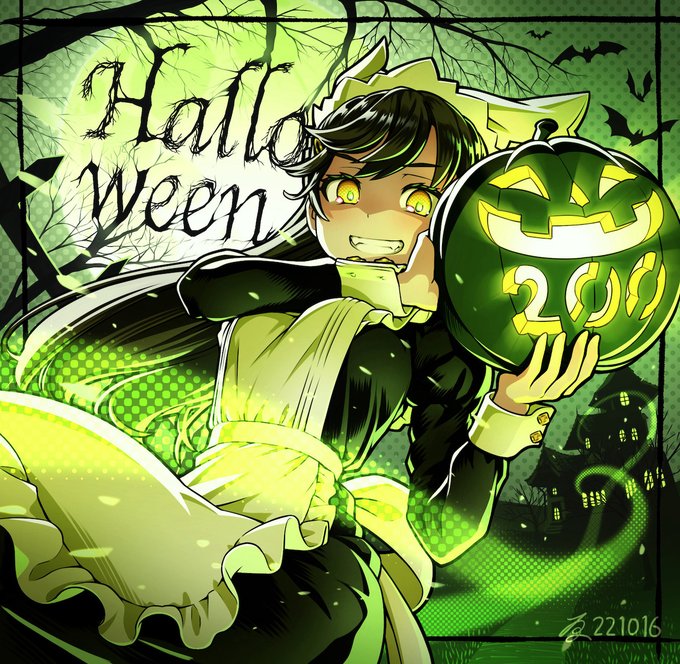 #あなたのみどり色の作品を見せてください #ハロウィンイラスト #オリジナルイラスト 遅くなりましたが、フォロワー200名様を達成しましたので、オリキャラメイドさんの記念絵を描きました! 繋がってくださった皆様、誠にありがとうございます!