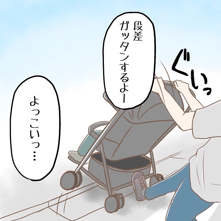 車を運転する人へ ベビーカーを押す時は、速度を落とし、前輪を持ち上げてから段差を乗り上げます 歩行者がきちんと渡り切るのを確認してから進むようお願いします ※盛ってます。でも体感ではこんな感じ #育児漫画 #エッセイ漫画 #漫画が読めるハッシュタグ #4コマ漫画