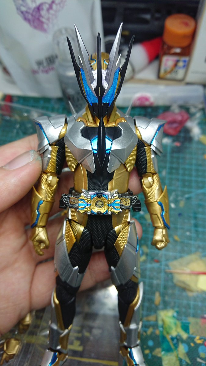 好みの色で仮面ライダーリバイス、サンダーゲイルを改造しました! イメージはジャックリバイスに黄金の稲妻を加えた姿です。 #造って遊ぼ #ニチアサフィギュア改造部 #仮面ライダーリバイス
