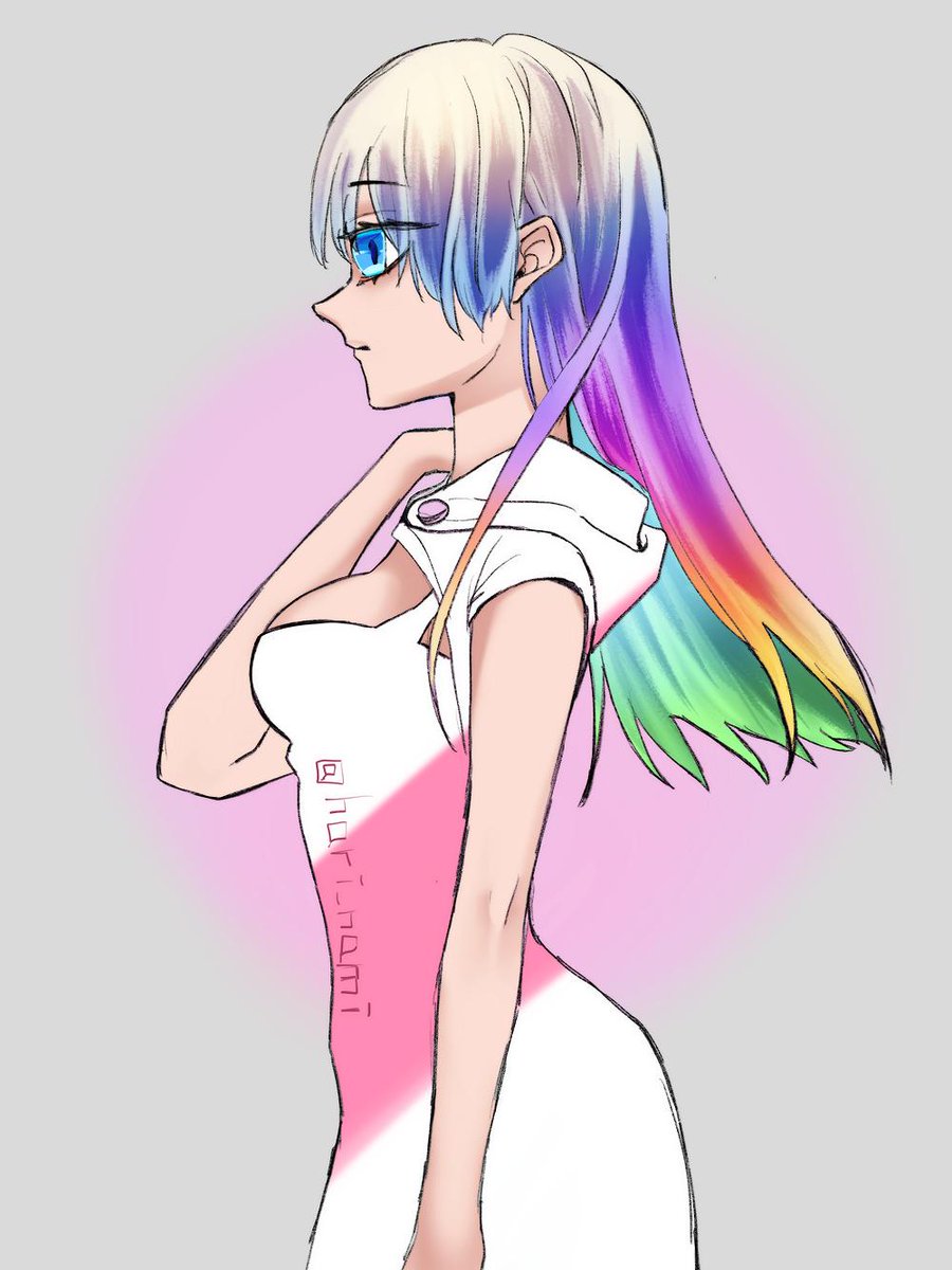 #新単眼版深夜の真剣お絵描き60分一本勝負 @tngn_1draw22 +8分 【ヘアーエクステンション】 エクステ付けてこれみよがしにドヤる単眼ちゃん ワンドロで描くデザインじゃなかったわ…