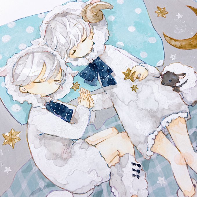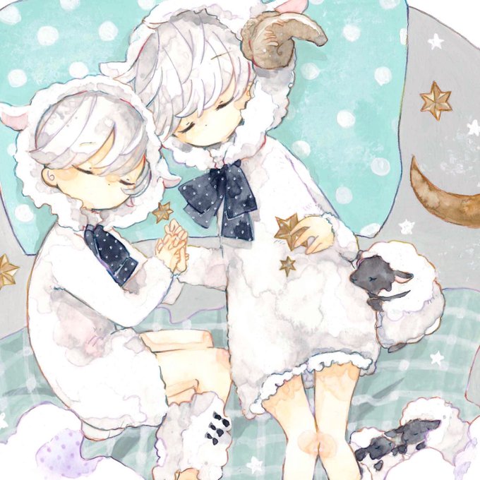いいゆめみてね☽🐏 #やがて白に染まる #イラスト