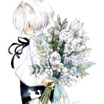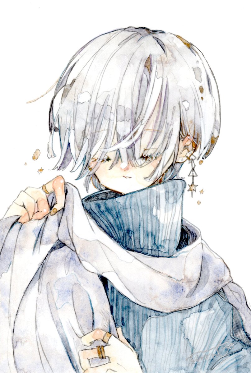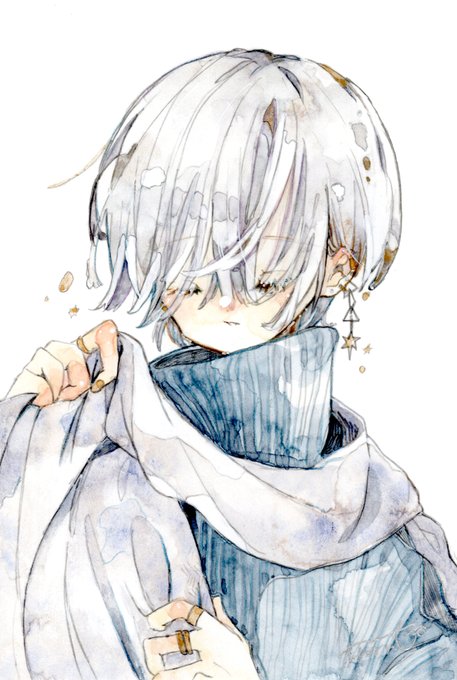 #三連休はフォロワーさんが増える 便乗〜!白髪の男の子を描いてます❁𓅪