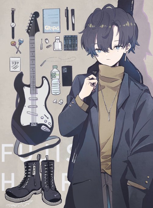 9 162 君の持ち物リスト② 路上ライブ活動中・祝禁煙一ヶ月目・飲み物は水派・優しく落ち着く声、、、 などの妄想を詰め込みました😌 #イラスト 22/10/19 22:19