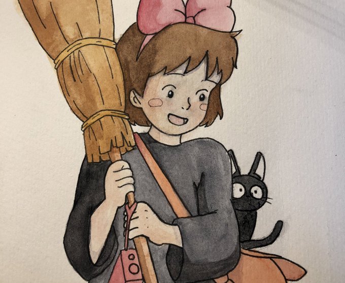 0 7 ジブリのイラスト書いたァァァ はみ出したァァァァァ🥺 #模写イラスト #ジブリ #魔女の宅急便 #イラスト #絵師さんとつながりたい #水彩画 21/02/16 00:04
