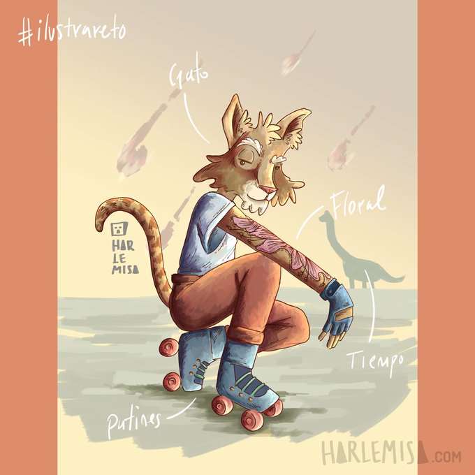 ⭕ #ilustrareto ⭕ Último ilustrareto del año. Dedicado a los moderadores bellos de mi canal en Twitch. 12 meses. 12 retos. Vamos por 12 más. ⚔️¿Cuáles fueron las palabras este mes? PATINES, GATO, FLORAL, TIEMPO . . #drawings #art #illustration #digitalart