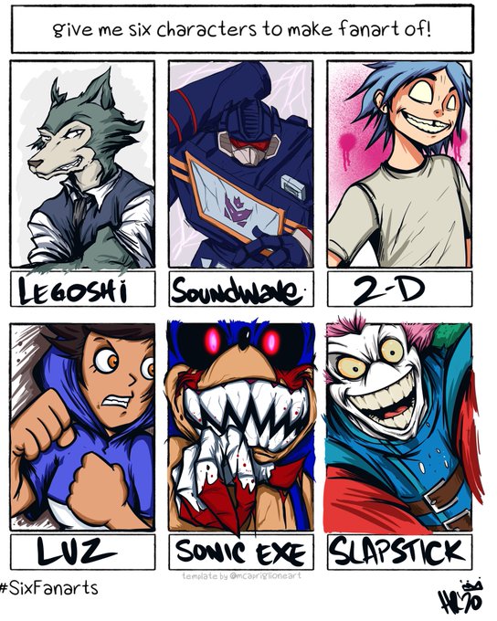Started this then got sick so finally getting it done. #SixFanarts #SixFanartsChallenge #legoshi #BEASTARS展 #gorillaz #OwlHouse #slapstick #Soundwave #Transformers #SonicEXE