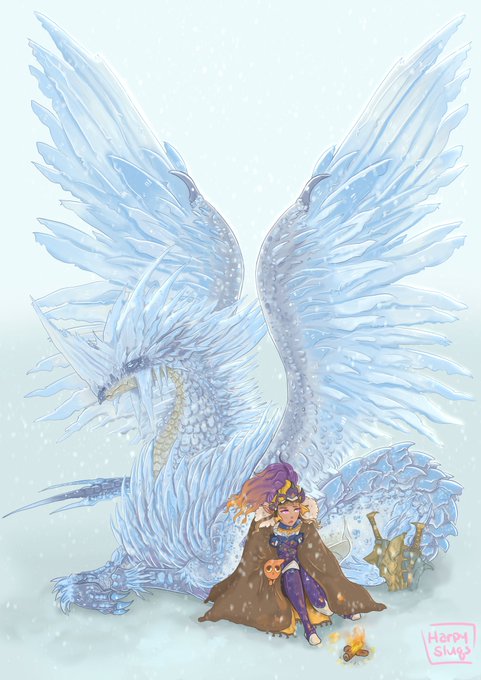 Velkhana and my rider keeping warm in a winter storm❄️ #monsterhunter #MonsterHunterRiseSunbreak #monsterhuntericeborne #mhstories #art #ArtistOnTwitter #artistsontwitter