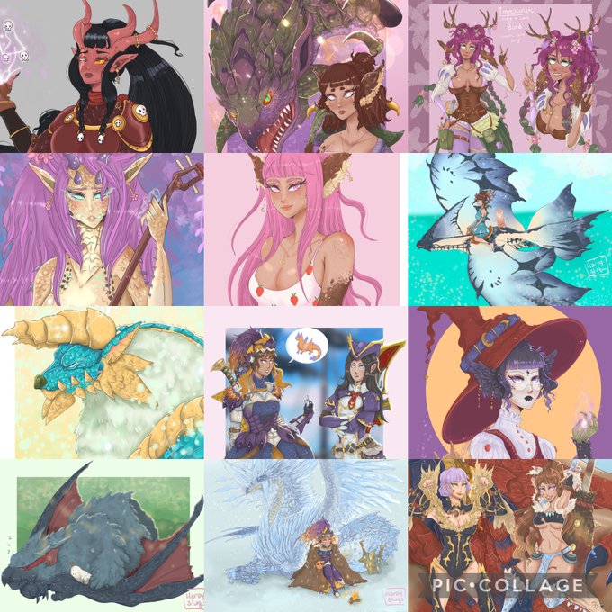 Year in review. I can’t figure out how to use a template on procreate ( one brain cell) and I’m trying to fight Mohg atm… Thanks to all moots, followers, and friends for sticking around. There will be more monster hunter/harpies/dnd in 2023! #Artsummary2022 #artistwrapped2022