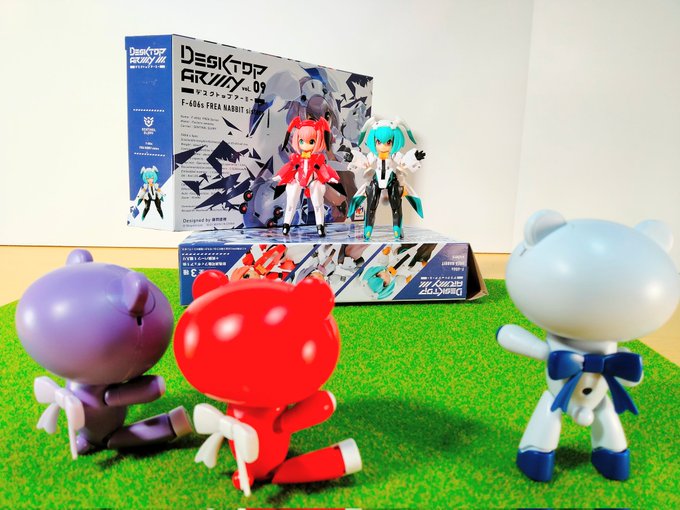 #最初のデスクトップアーミー ガンプラおじさんが美プラ(知っていたのはFAガールのみ)を求め探し漂っていた時、目に映った小さな天使、それがデスクトップアーミーのフレアナビットちゃんとの出会いです。手に取っては元に戻しを二日行い、3度目の三日目でお迎えしました!😅💕 #デスクトップアーミー