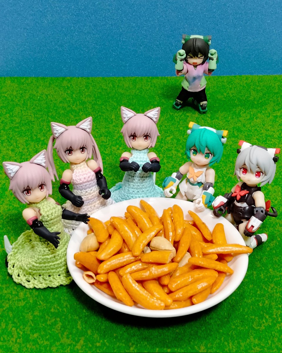 8/10(水) 今日のチビっ娘達💕 な:あきちゃん、でかしたな! あ:えへへっ💦 す:キャハハ、でかした!でかした! マ:…(まったく、イタズラ三人衆はww) ゆ:アイツら、凄い食いつきだなぁ… ふ:ハッハッハ、まったく本当に… 俺たちの分残しておいてくれよぉ! #デスクトップアーミー #雑多撮影同好会