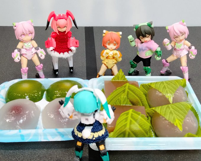 8/8(月) 今日のチビっ娘達💕 マ:今日は世界猫の日だよ🐱 ミ:暑い日が続くのでマスターから涼し気なお菓子の差入れだ!感謝して食べろよ! ロ:あらあら、イイわね! は:うん😃 あ:おぉーお菓子さま✨ な:いぇ〜い♪ す:いぇーい、いぇーい! マ:そしてデブの日… #デスクトップアーミー #雑多撮影同好会