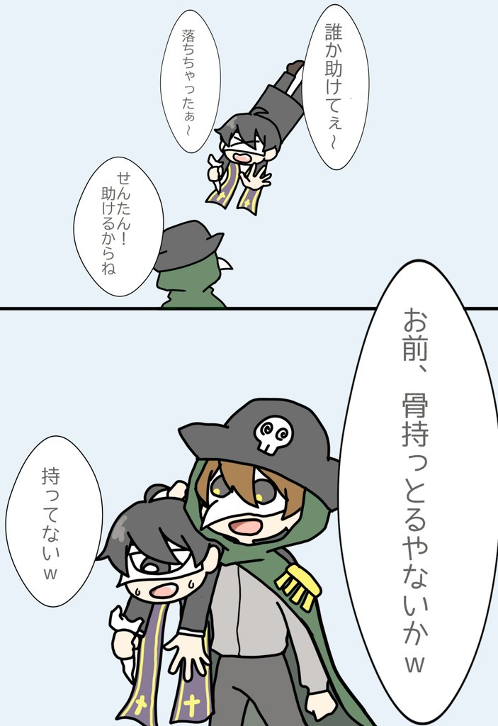 骨持ったまま助け求めて担がれて見つかるの面白かった。 #せんたんあーと