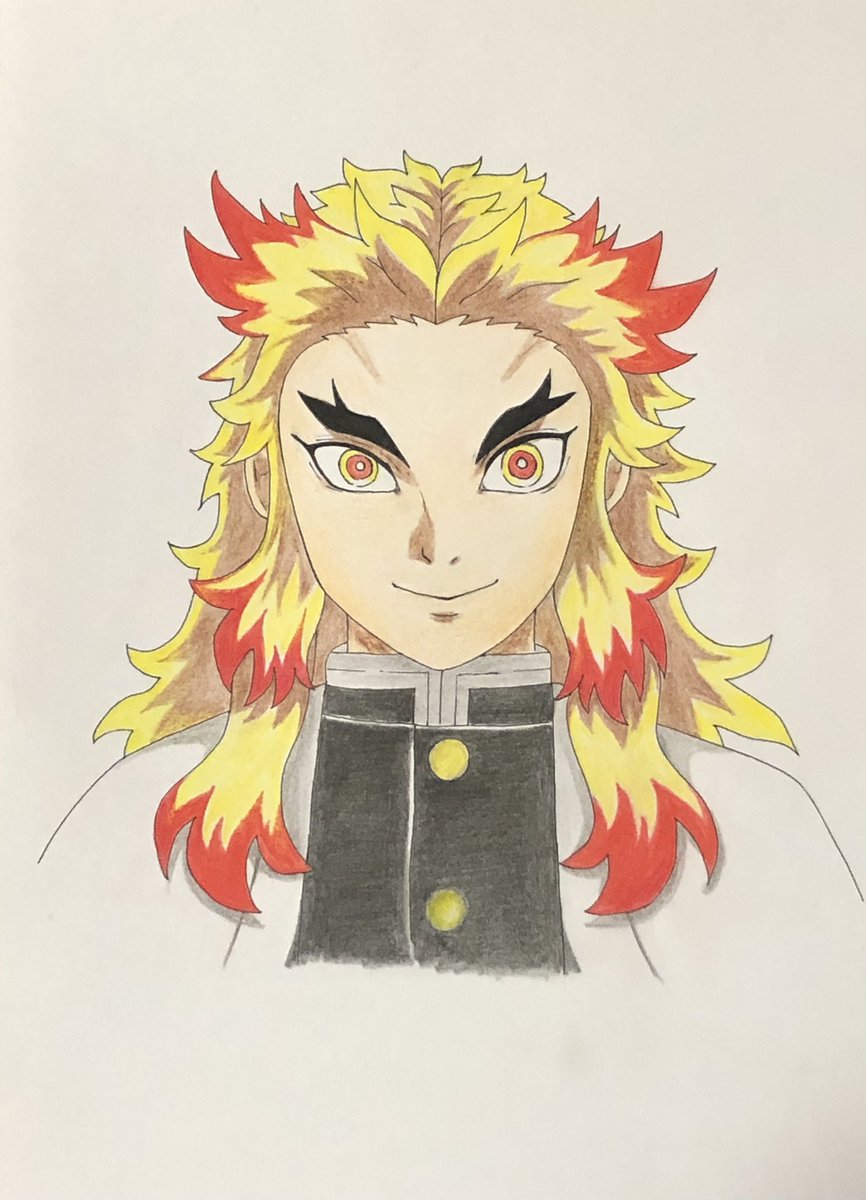今年こそ大好きな貴方をイラストでお祝いさせて下さい。 今までもこれからもずっと大好きです。 お誕生日おめでとうございます❤️🔥 何とか今日中に間に合った‼︎目の大きさ左右違うけど頑張ったのでヨシ☺️ #煉獄杏寿郎生誕祭2022 #煉獄杏寿郎誕生日2022 #模写 #色鉛筆