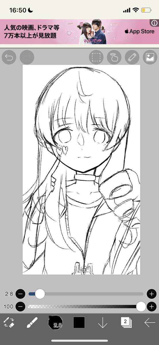 2 14 こっから線画に持ってくけど下描きぐっちゃぐちゃで頭おかしくなりそう() #コンパスお絵描き 22/03/19 17:02