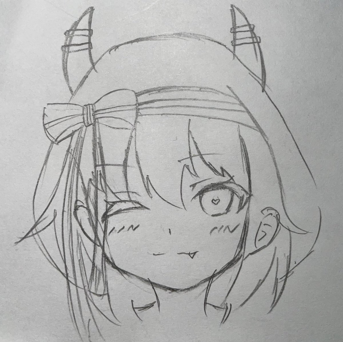 こっから線画に持ってくけど下描きぐっちゃぐちゃで頭おかしくなりそう() #コンパスお絵描き