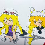 今日は大学が早く終わったから落書き‼︎‼︎ ZUNさん風仙狐さんと、仙狐さん風藍様