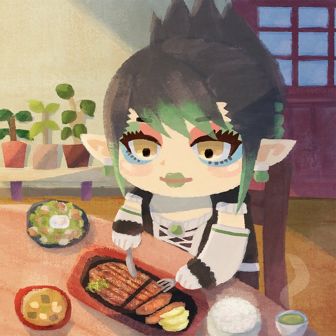 3 68 唐揚げ定食を食べるローレン #イロ絵す 23/06/29 17:00