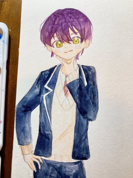 9 95 水彩です 2枚目は曲パロ #金剛力也像 #絵ガク 22/04/02 18:25