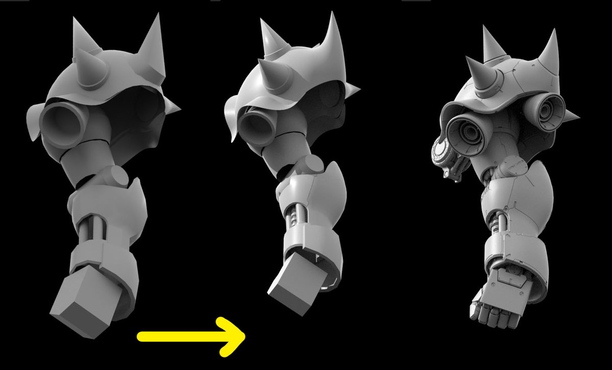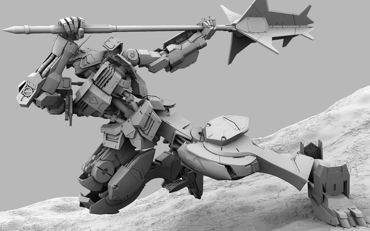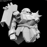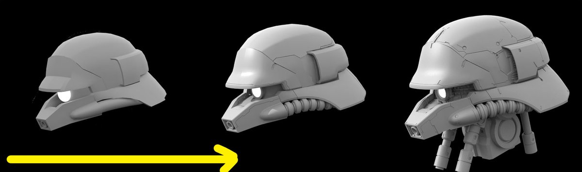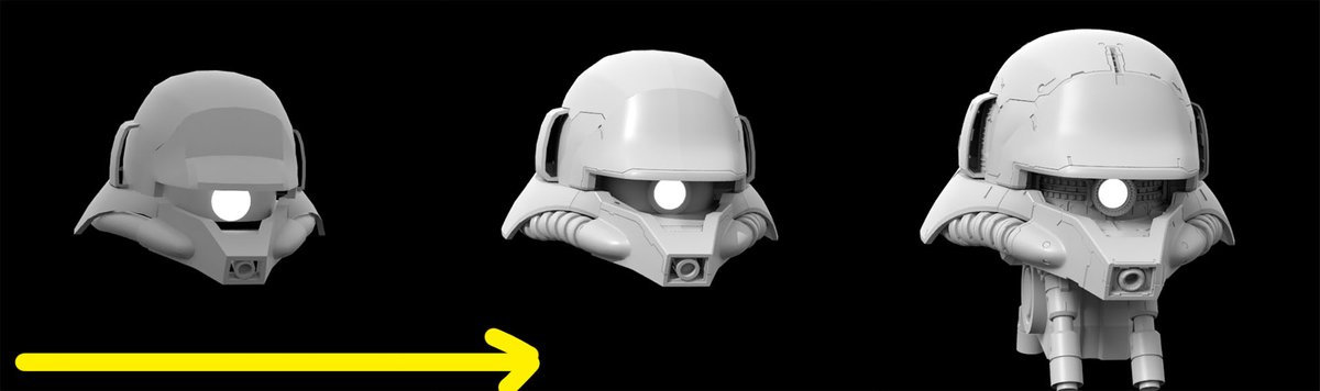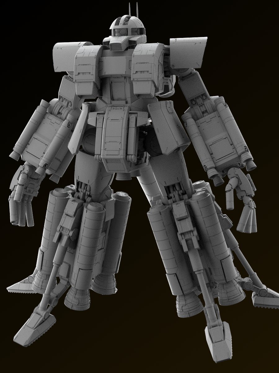 #これがこうしてこうなった 頭のディティール調整が済んだのでこれでfixとします! 首関節がヘボいのはほぼ見えないから形だけ、ということで。 ジェガンの隣に並べたときに情報量で見劣りしなければいいんだけど。
