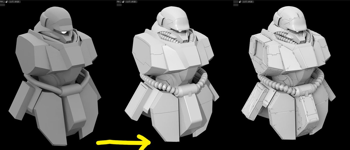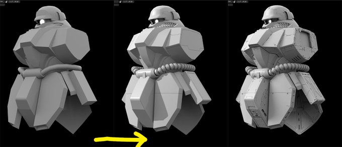 #これがこうしてこうなった 腕~脚のディテール修正を行いました。これにて手脚のモデルfixです。 これでギラ・ドーガ本体のモデリングは終了になります。あと残すは盾とマシンガンのみ、長かった…。