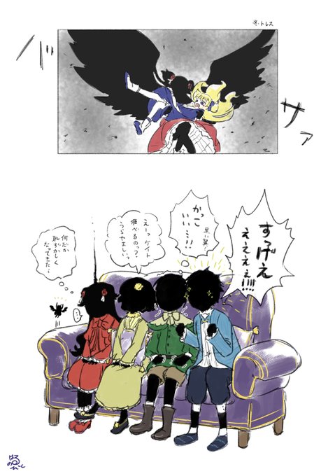 14 62 【原作ネタバレあり】 我らが主人公ペアのお披露目での勇姿を鑑賞する同期組 ※1枚目は再掲 生き人形側も描きました せっかくだからこないだのシャドー側もセットで ショーンとラムの心臓がもたない 21/06/26 22:21