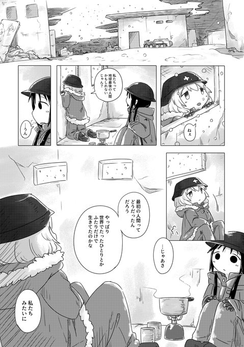 ついでにさっきpixivの通知眺めてたら出てきた、自分でも描いたの忘れてたゆるい漫画どうぞ #少女終末旅行