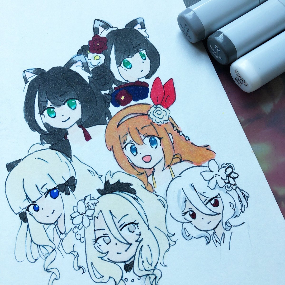 ちょっとした出来心で仲間にした限定全員描いてみよ〜とか思ったけど無理でした。挫折した。いつかリベンジしたい…サレンちゃんと振袖キャルちゃんだけは満足してます #プリコネR #イラスト #コピック #絵描きさんと繫がりたい