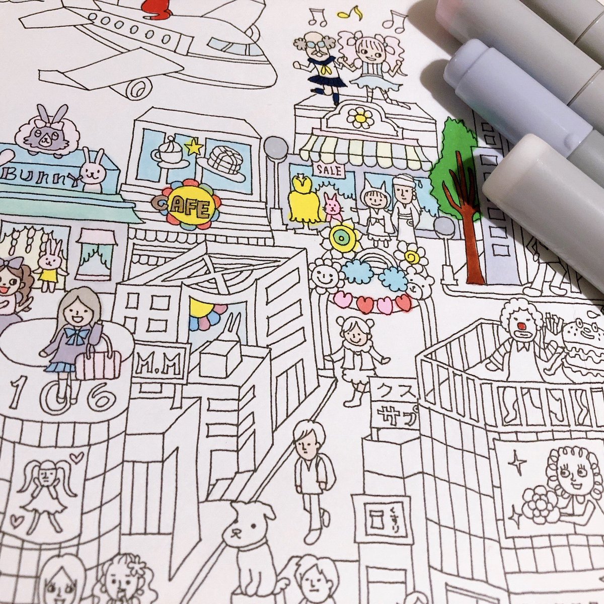 DAISOのヌリエマップ。細かすぎて心折れた… #daisoヌリエマップ・ポスター #daiso #塗り絵 #ぬりえ #コピック #クラミサヨ さん