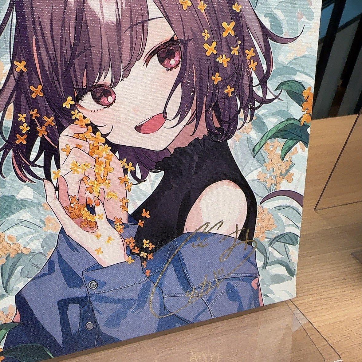 会場に展示中の先着限定のサイン入りキャンバスはこんな感じです!印刷もいい感じです。 サインなしのものはboothで通販予約しておりますのでよろしくお願いします! konakomocchi.booth.pm twitter.com/haru_sugar02/s…