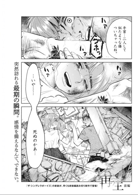 44 145 本日発売のスペリオール11号にて前後編読切「再生」の前編を掲載させて頂いています! 「君の名は」が公開した頃、先に「前前前世」だけ聴いて「『君の名は』ってなんとなくこんな話なのかな〜」と妄想してたものに、自分のやりたいことを加えたお話です。 全然「君の名は」みたいな話ではありません。 22/05/13 12:54